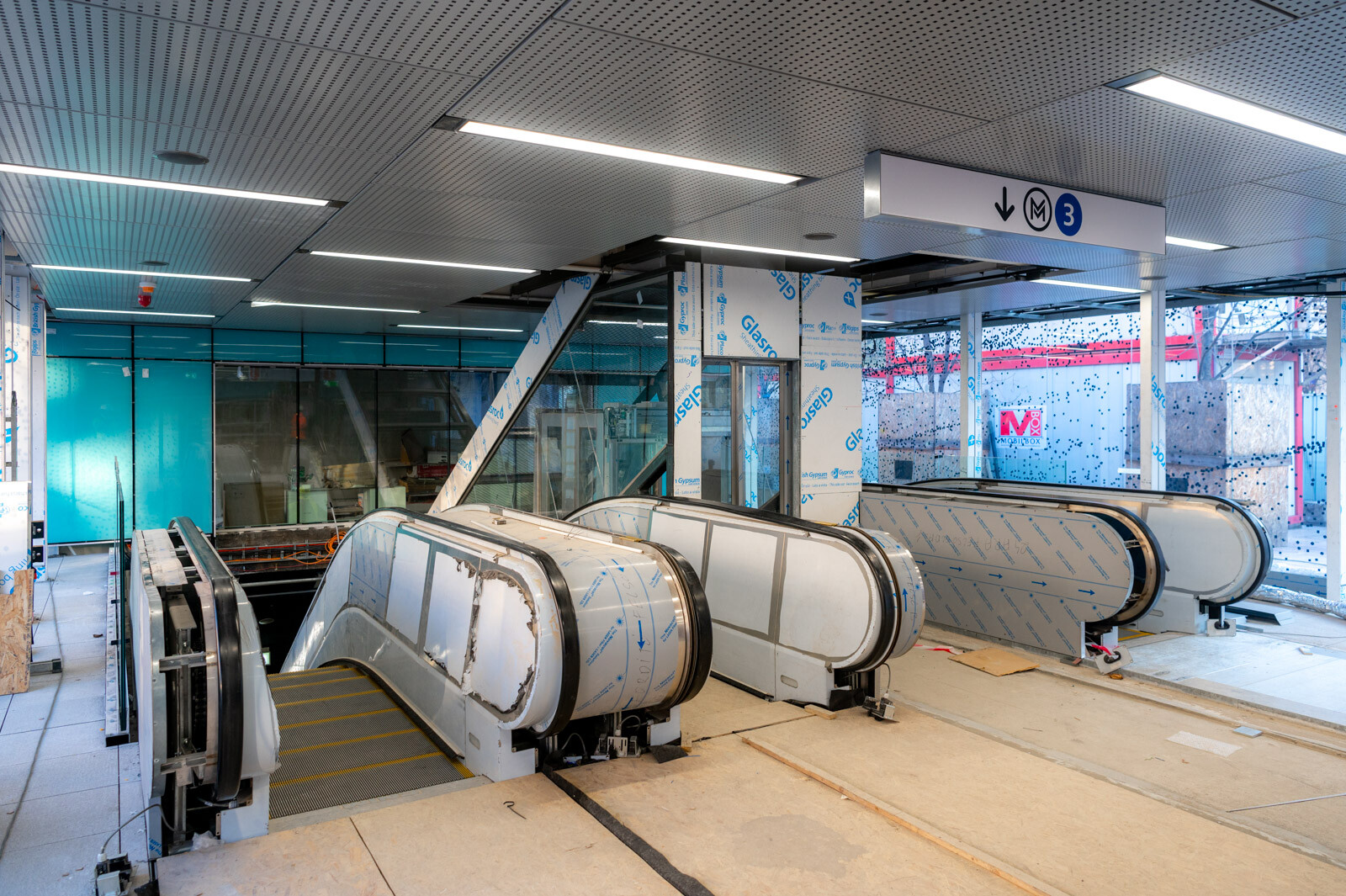 Az ÁDI (állomási diszpécser) szobában megkezdődött a bútorok (állomási diszpécser és műszaki ügyeletesi irányítópult) és egyéb berendezési tárgyak beépítése. Ahogy a lenti képen is látható, a beépített ÁDI-ablakból közvetlen rálátás nyílik a mozgólépcsőkre és a ferdeliftre.