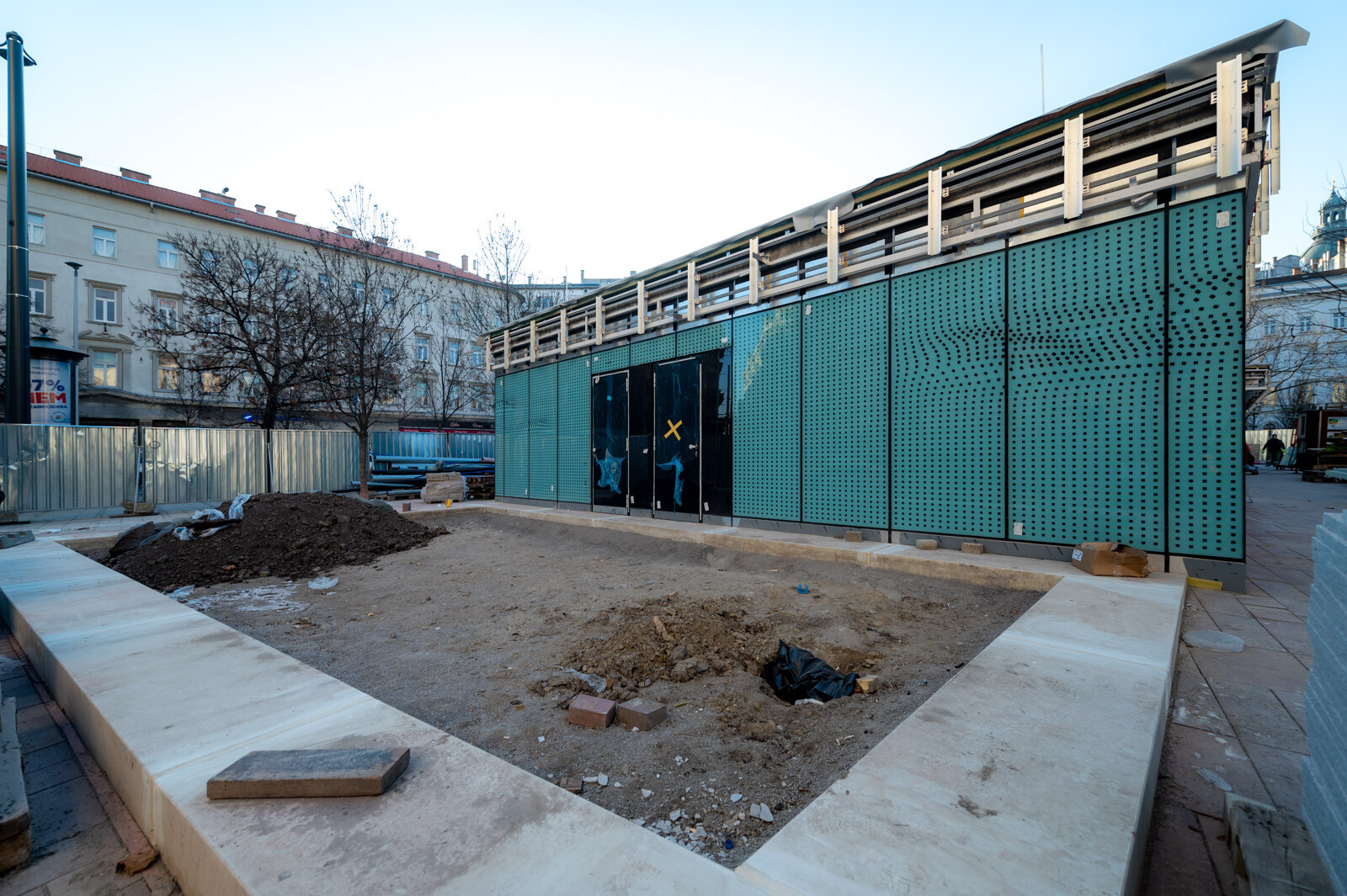 „A metrófelújítás felszíni kiszolgáló kapcsolata, valamint az épület új köntösbe való öltöztetése miatt a terület egyes részein a korábban elkészült térburkolatot, illetve felszíni növénykazettát szükséges volt elbontani. A fényképeken a tér helyreállítási munkálatait lehet látni, azon belül a növénykazetta visszaépítését” – tájékoztatott a projektvezető.