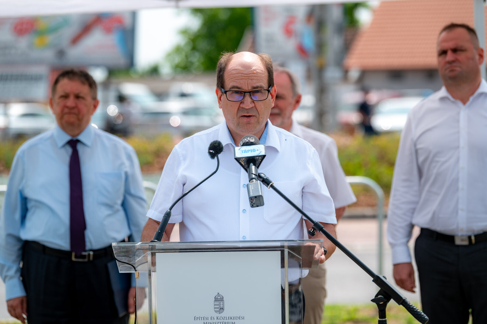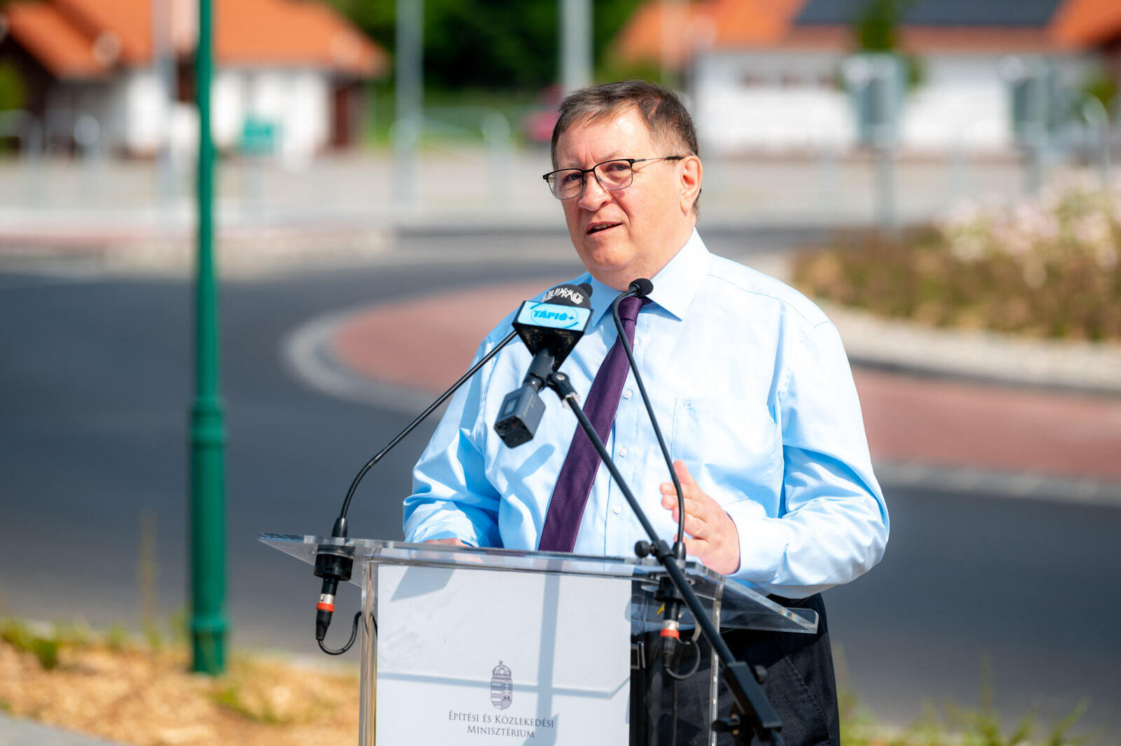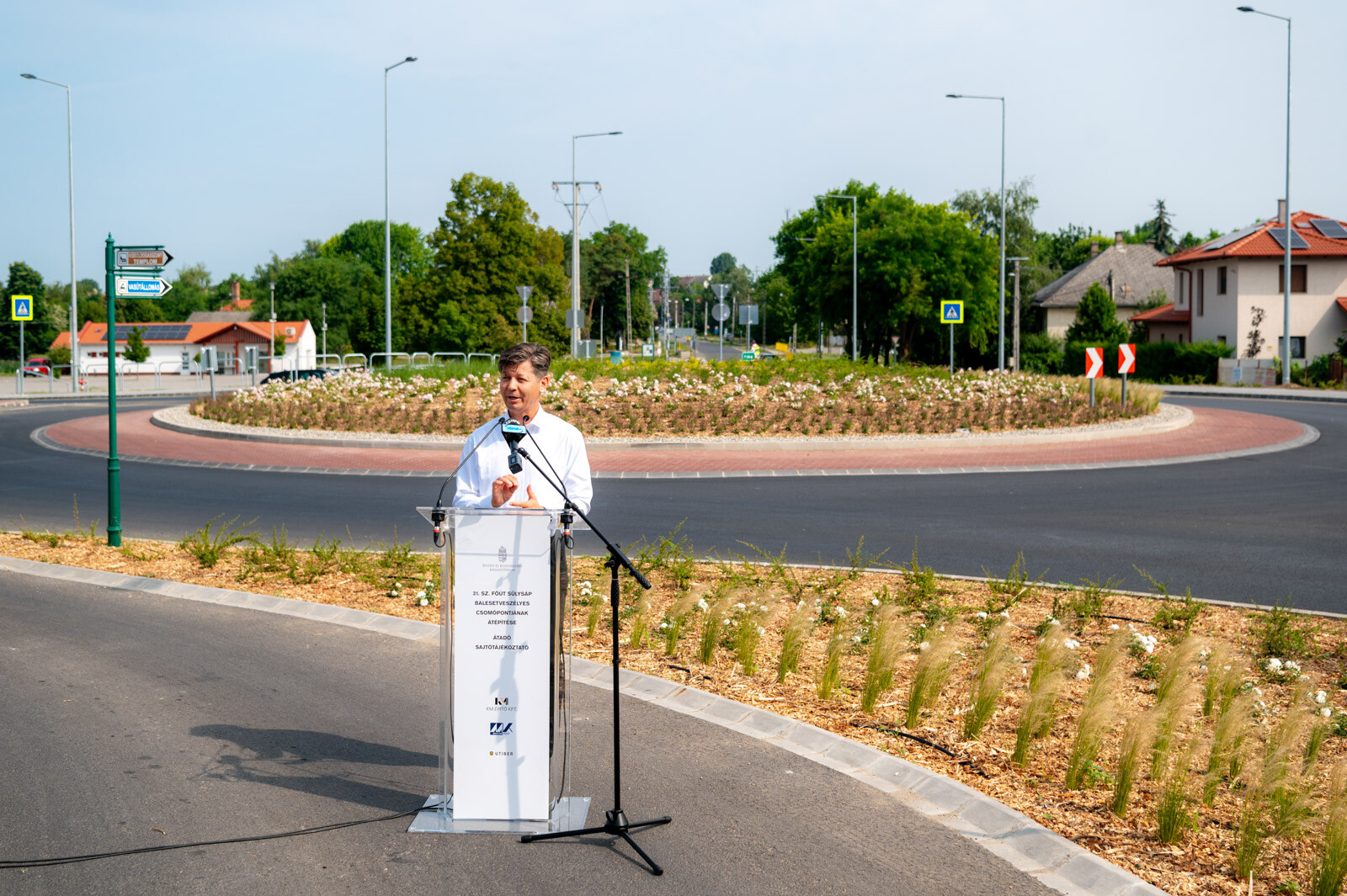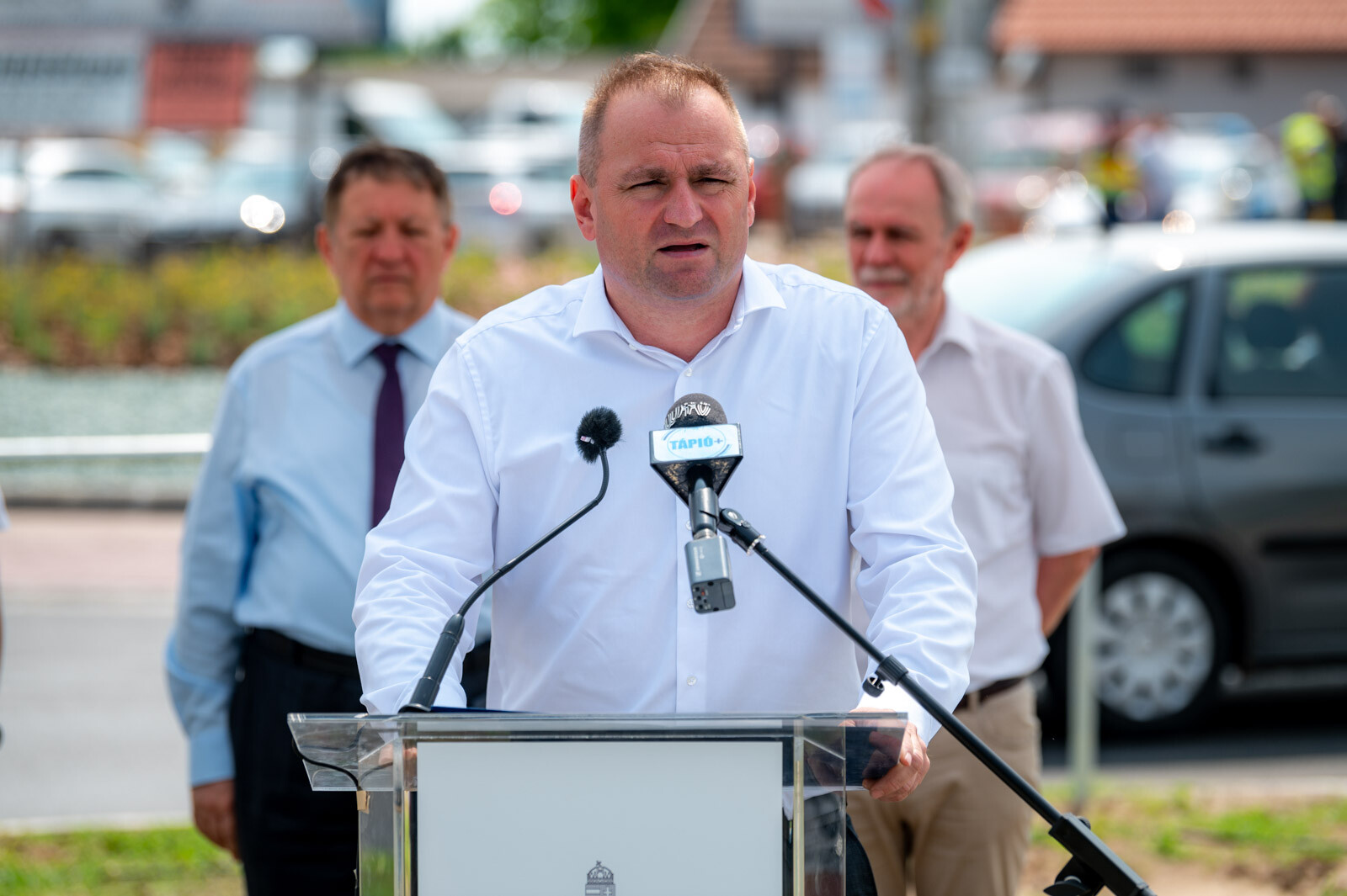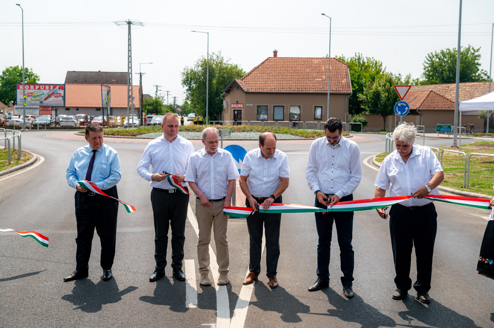 Pántya József, az Építési és Közlekedési Minisztérium útépítési beruházások támogatásáért felelős helyettes államtitkára a beruházás helyszínén elmondta: a háromágú körforgalmat nettó 611,9 millió forintból alakították ki, közműkiváltással, csatornázási és más tereprendezési munkákkal.