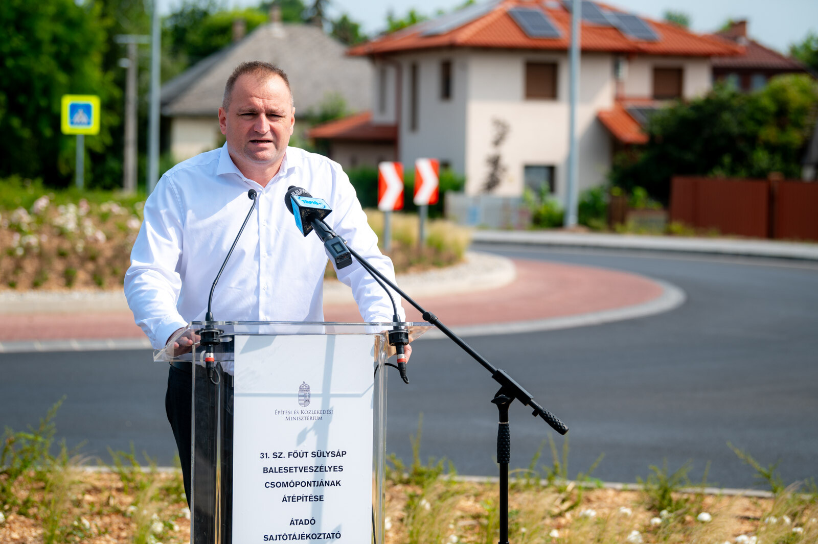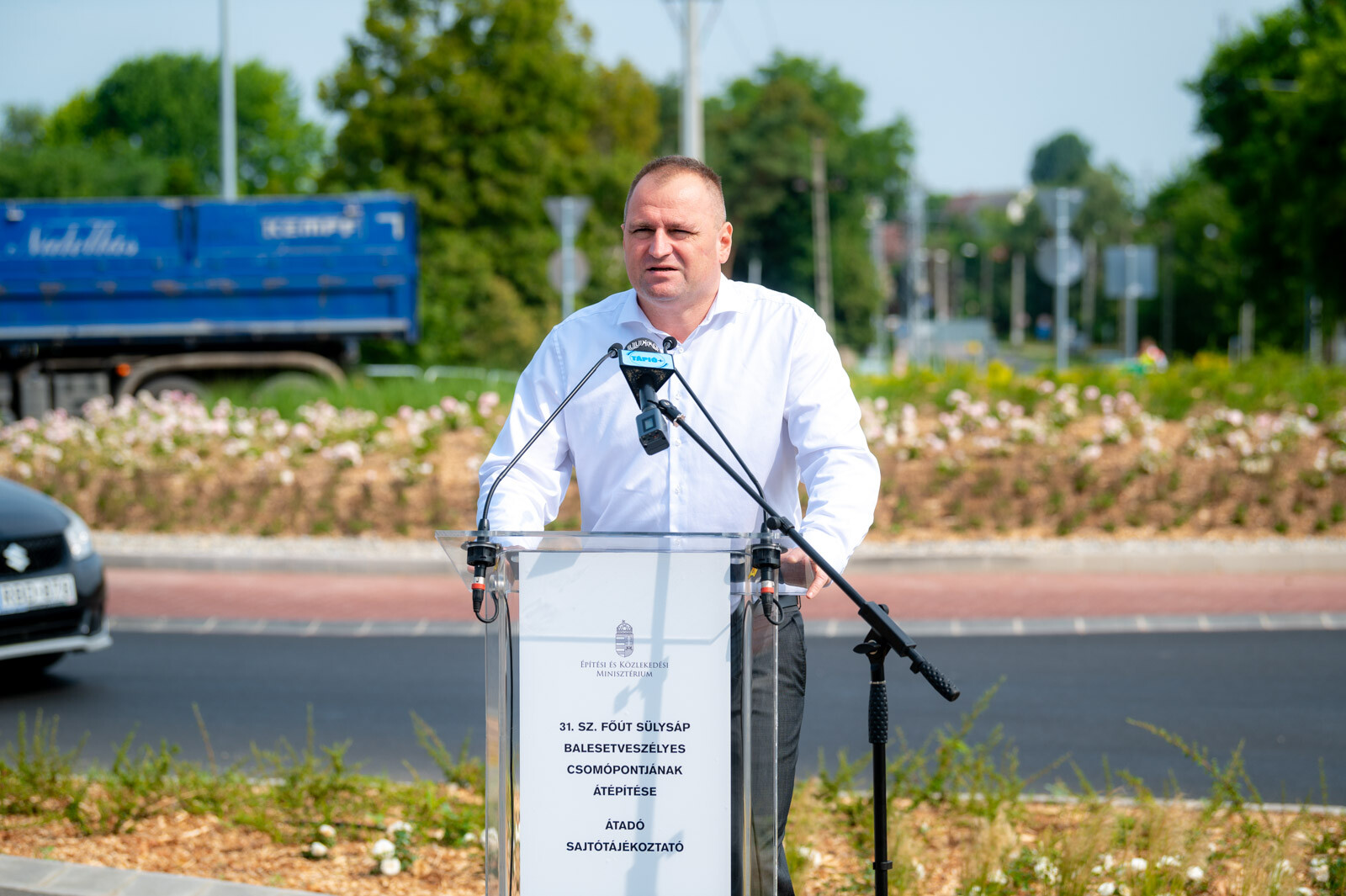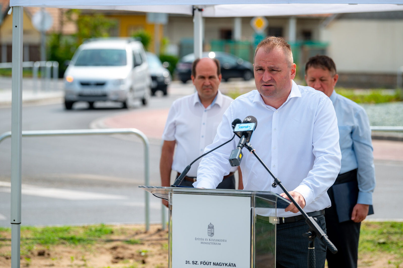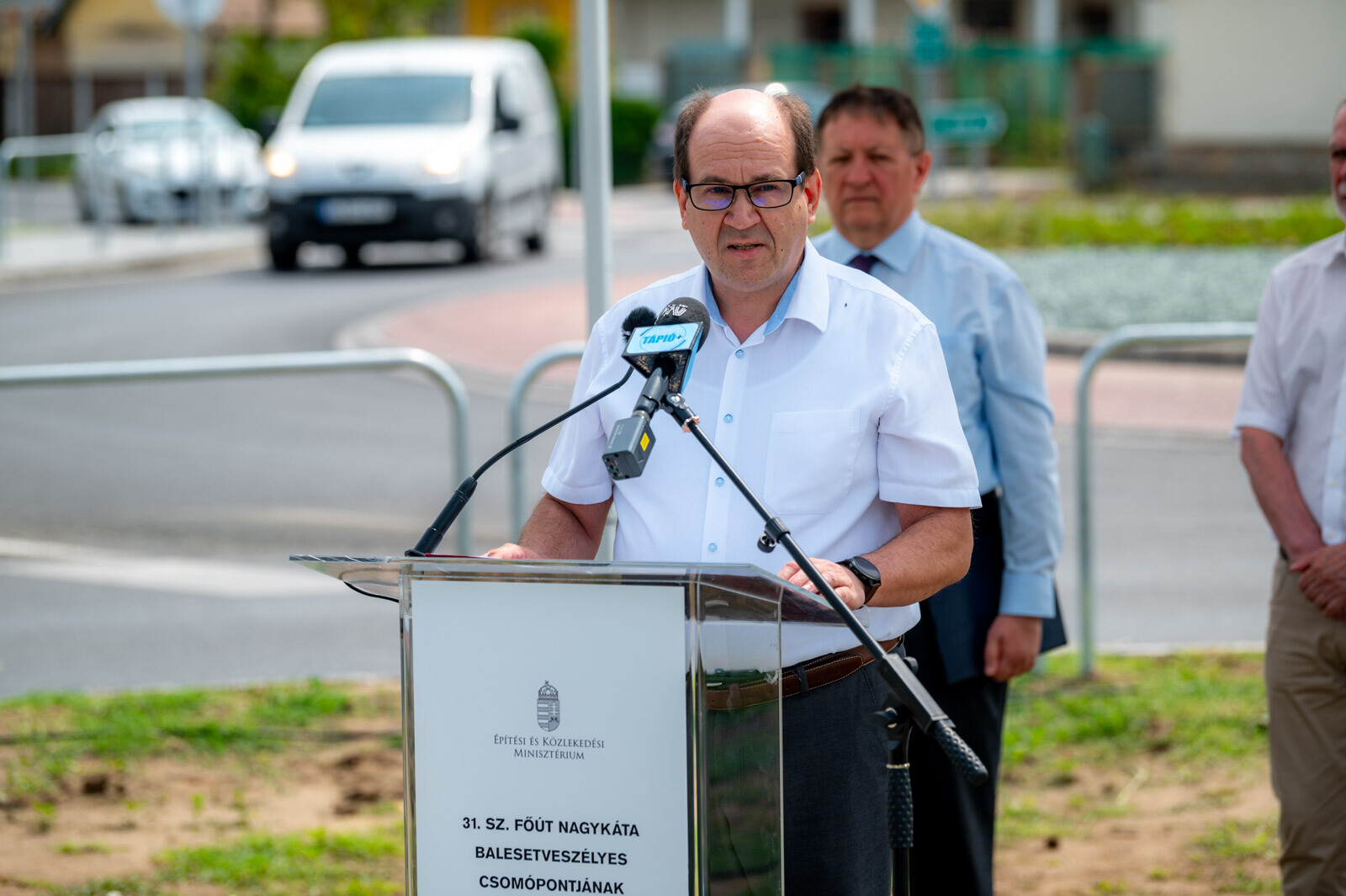 Pántya József, az Építési és Közlekedési Minisztérium útépítési beruházások támogatásáért felelős helyettes államtitkára a beruházás helyszínén elmondta: a háromágú körforgalmat nettó 611,9 millió forintból alakították ki, közműkiváltással, csatornázási és más tereprendezési munkákkal.