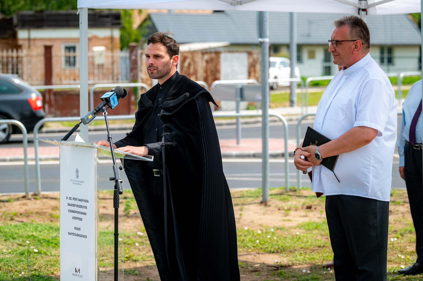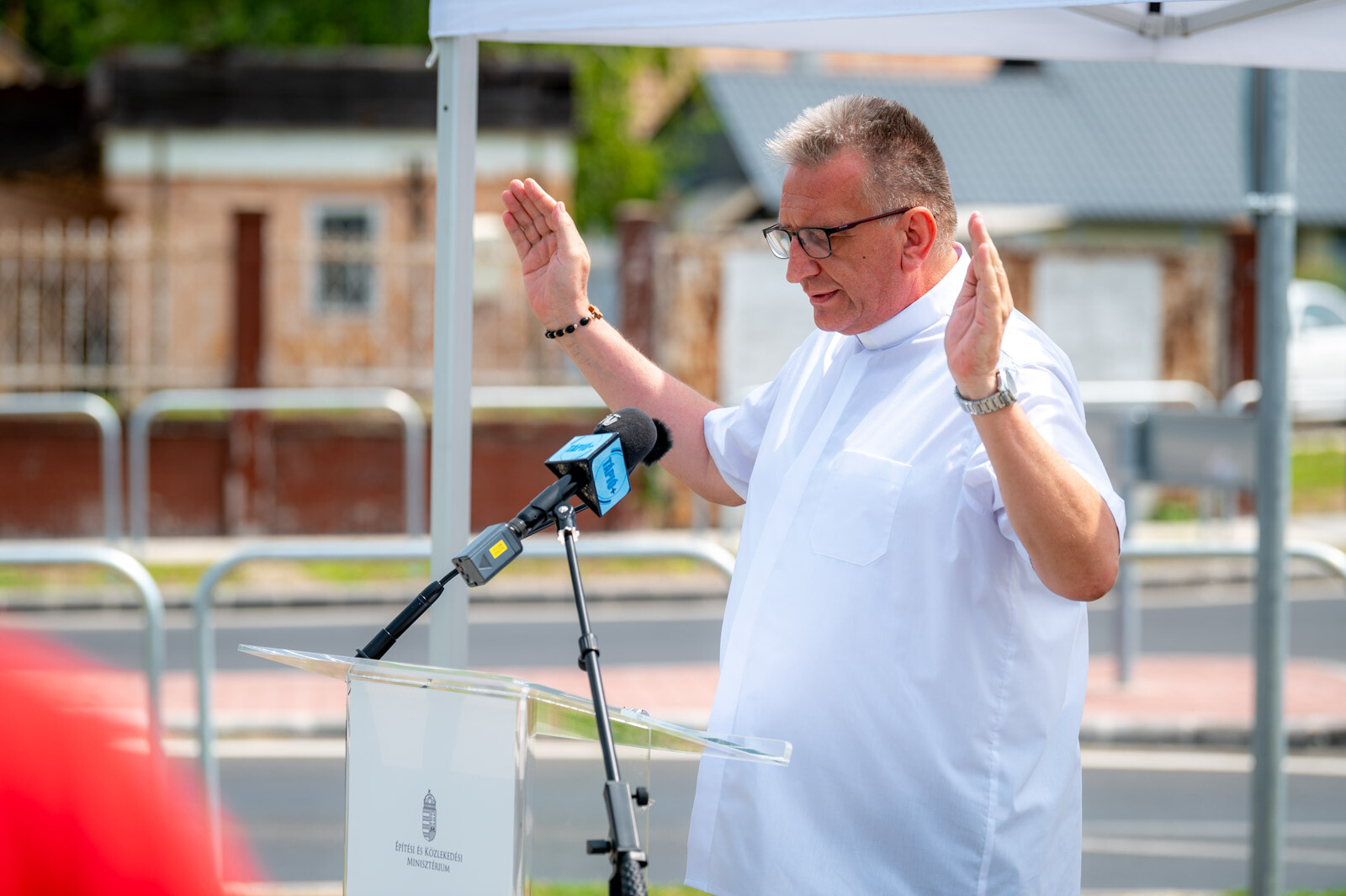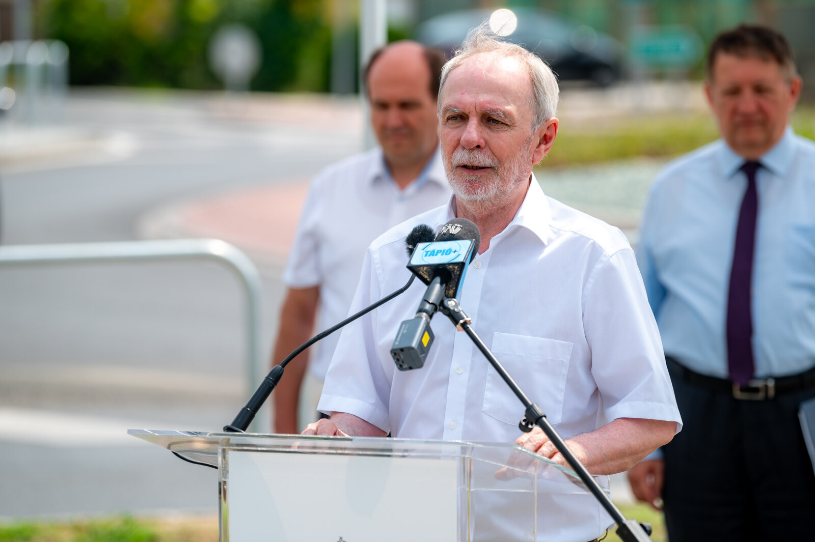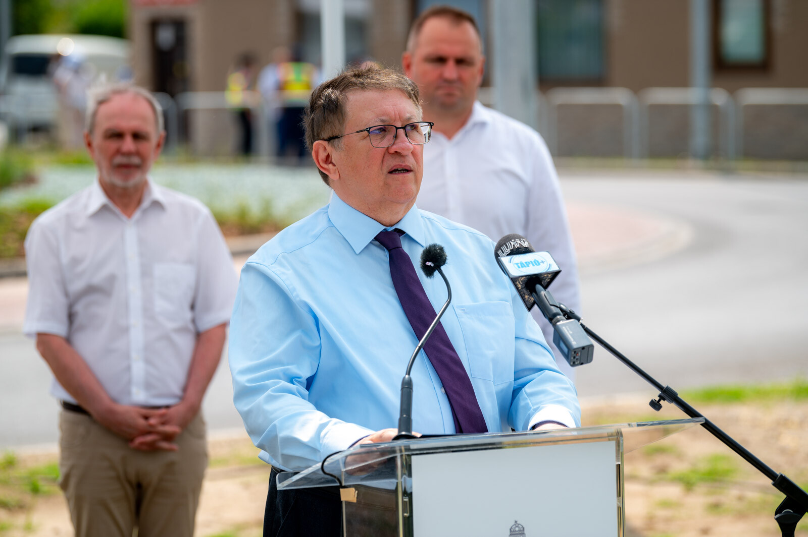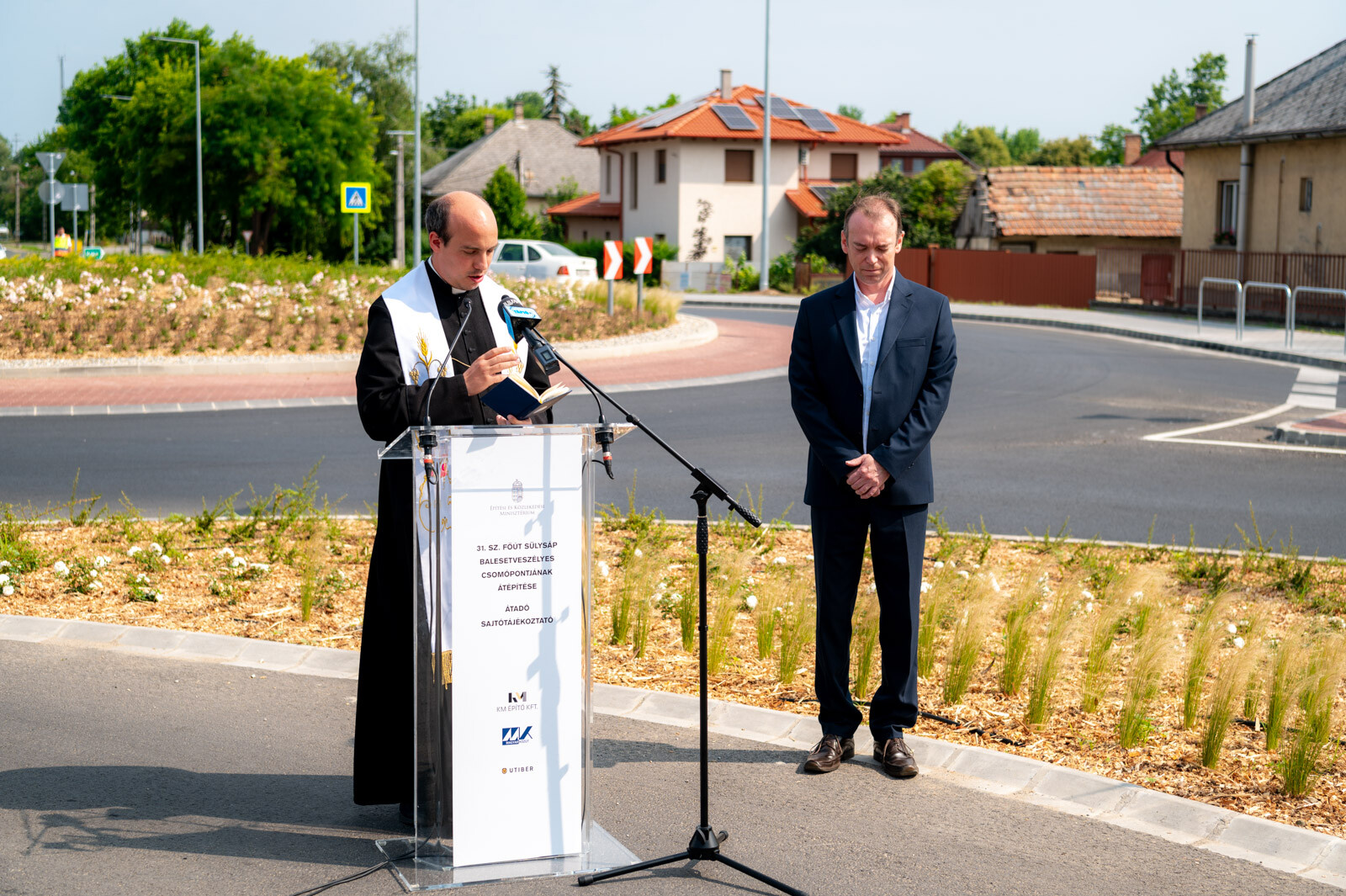 Pántya József, az Építési és Közlekedési Minisztérium útépítési beruházások támogatásáért felelős helyettes államtitkára a beruházás helyszínén elmondta: a háromágú körforgalmat nettó 611,9 millió forintból alakították ki, közműkiváltással, csatornázási és más tereprendezési munkákkal.