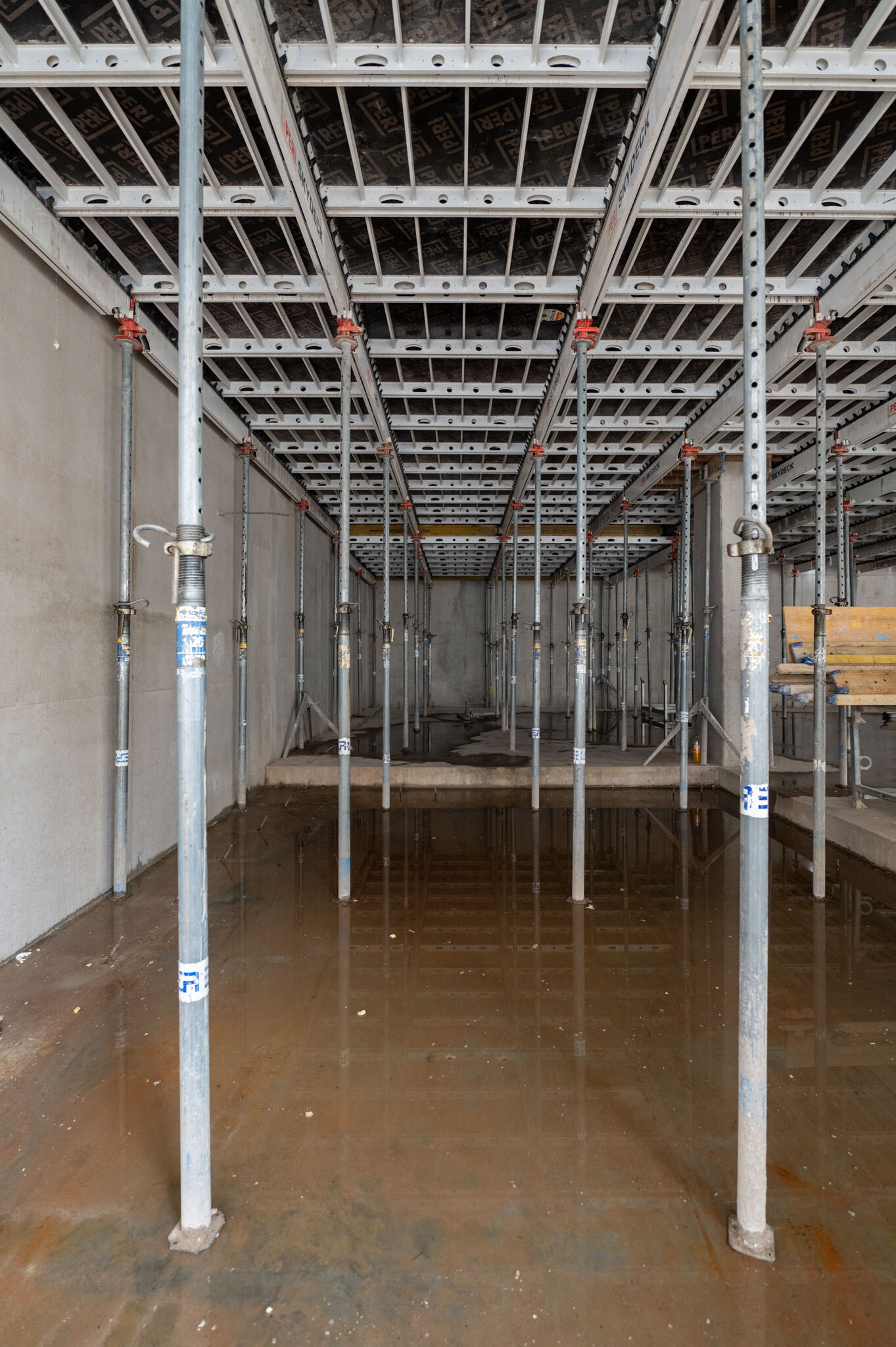 „A cölöpökkel gyámolított rugalmasan ágyazott vízzáró alaplemez vastagsága jellemzően 50 centiméter, de a felszerkezeti terhelések miatt több helyen is 80 centiméter, illetve 130 centiméteres lemezvastagságra volt szükség, melynek betonozási munkálatait a betontechnológus által előírt réteges betonozással, illetve pontosan meghatározott betonminőséggel végeztünk el.”