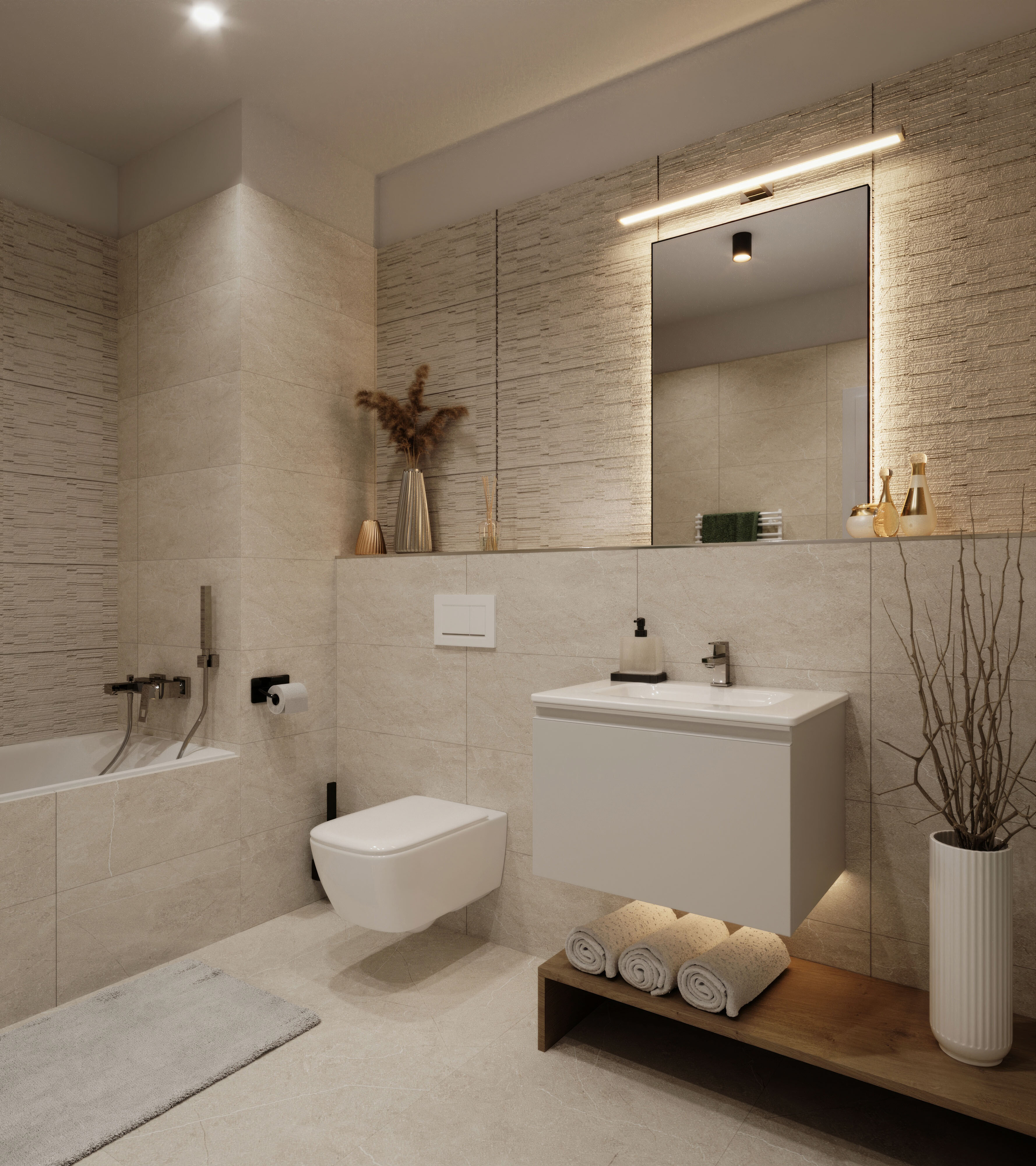 Fontos alapelve a Bayer Consruct tervezőinek a költségek minimalizálása és a kivitelezési idő csökkentése, hiszen ez nem csupán a beruházó, de a vásárló érdeke is. Ezért is döntöttek úgy, hogy a lakások esetében csak kétféle színvilág választható: nude és szürke. Ugyanennek a szempontnak felel meg a megújuló energia minél nagyobb mértékű felhasználása vagy épp az előregyártott elemek lehető legnagyobb arányban való felhasználása.