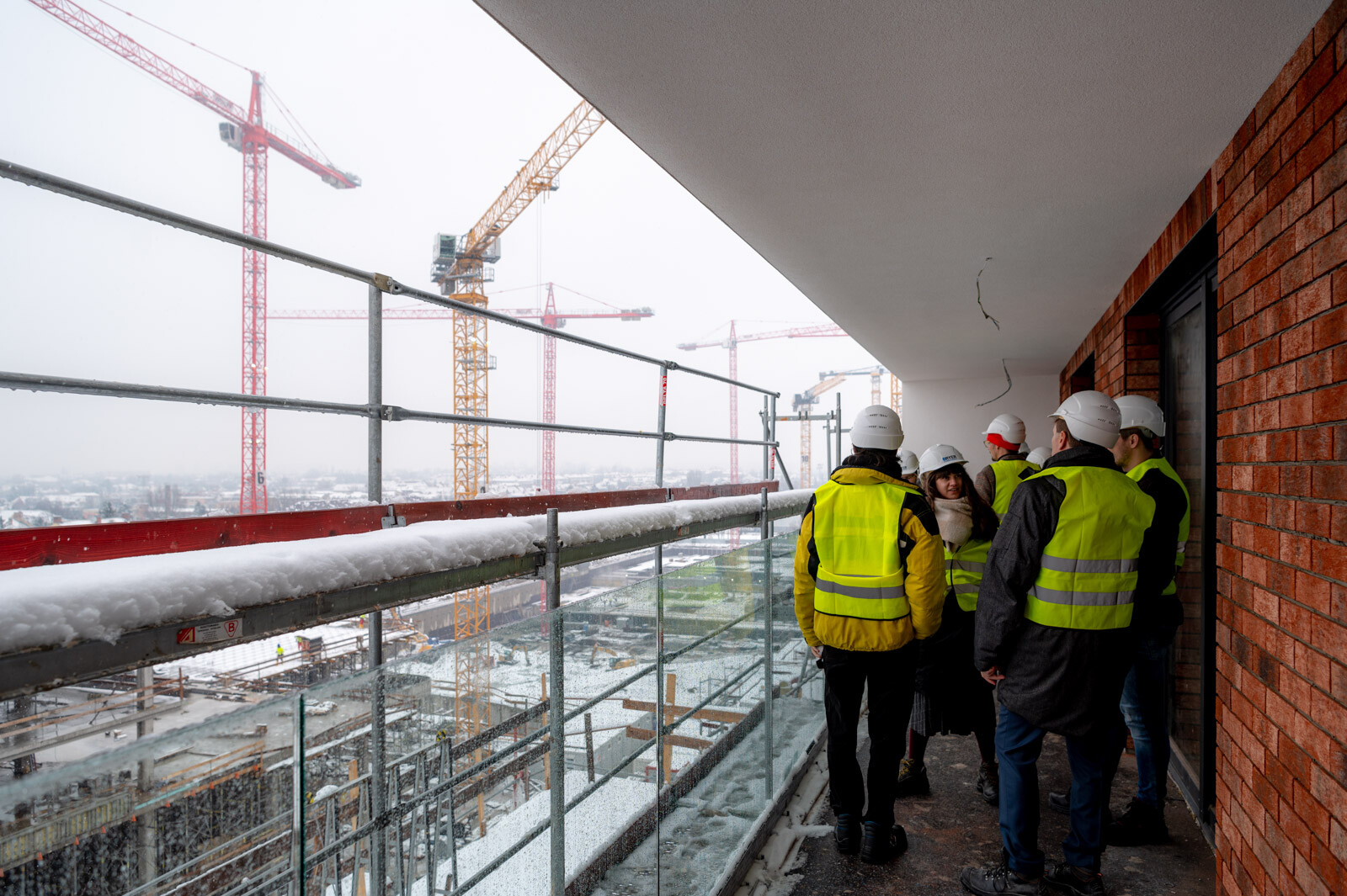 A fejlesztést Balla Ákos értékesítési igazgató és Harmat Imre fejlesztési igazgató mutatta be látványos prezentáció keretében, a helyszínen pedig Pavelka Péter, a társasház kivitelezési munkálatait irányító projektvezető kalauzolta végig az érdeklődőket.