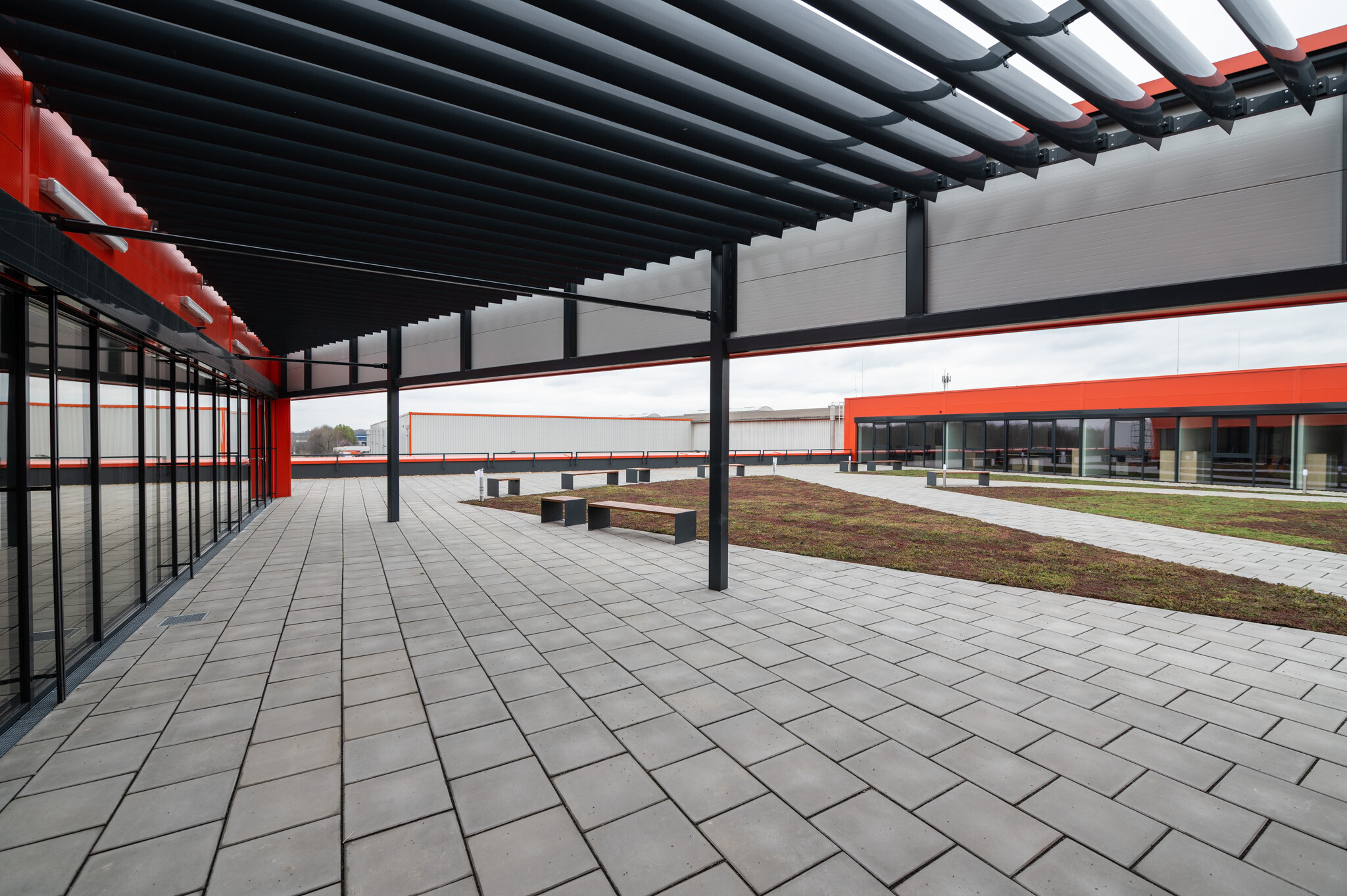 A szállítmányozási és logisztikai központ esetében kulcskérdés a raktárterek megközelíthetősége. Az épületkomplexum körül összesen 41.065 m2 felületen végeztek külső térburkolást a szakemberek, ami közel hat focipálya területének felel meg.