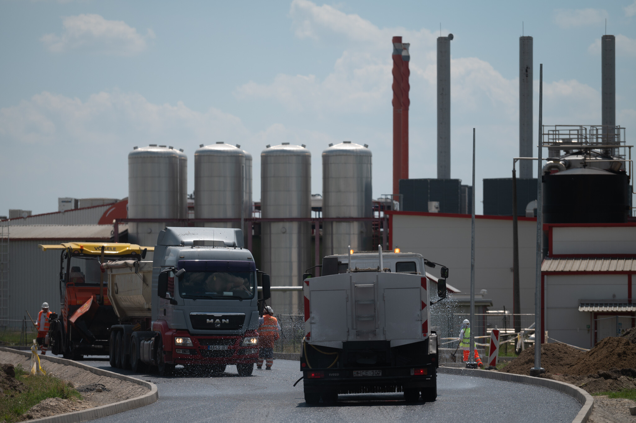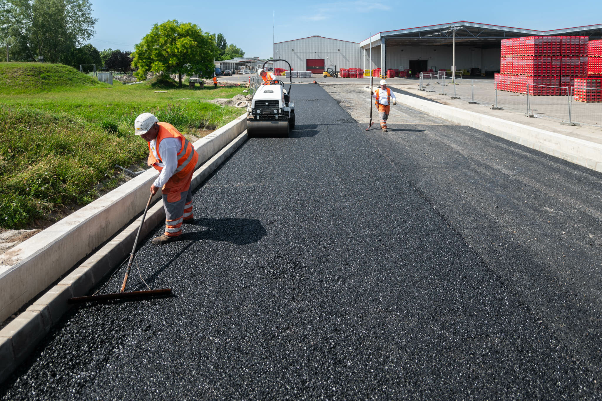 Az új úthálózat kialakításához a mintegy 5500 tonna aszfaltot a Colas Út Zrt. Dunaharaszti aszfaltkeverő üzeméből szállították a kivitelezés helyszínére.
