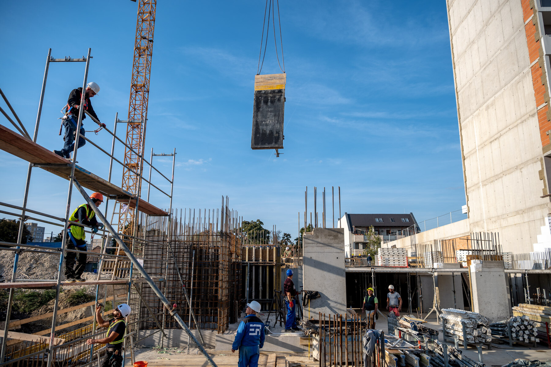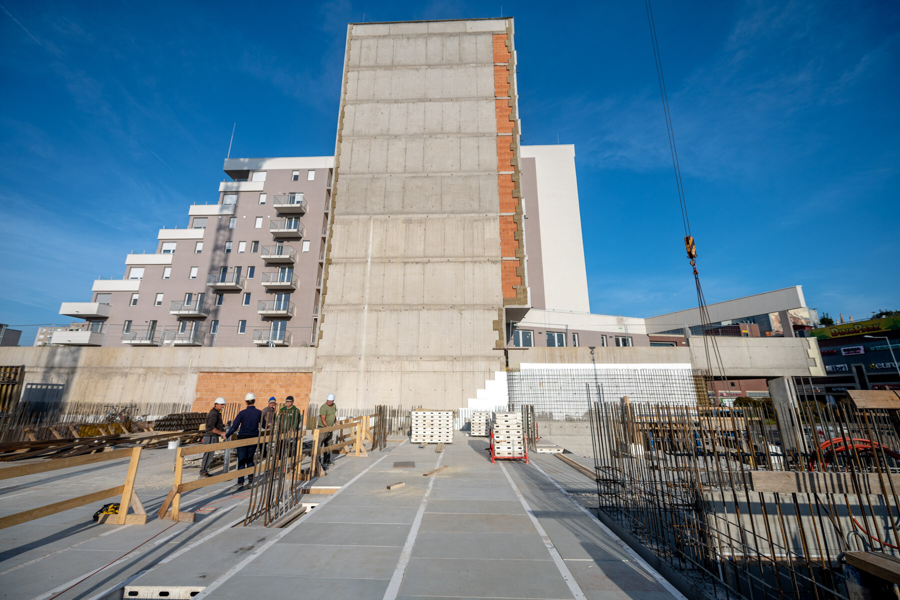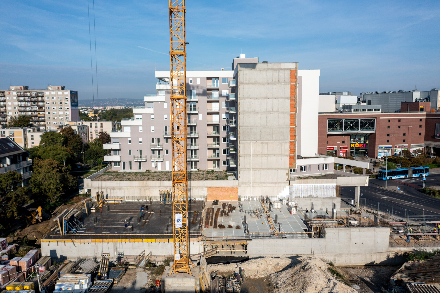 „Nagyobb nehézséget talán csak a földmunka során, nyíltvíztartással végzett víztelenítés jelentett a cölöpfejek és az alaplemez, valamint a liftakna süllyeszték kivitelezésének időszakában” – mesélte Szász Bálint, az ÉPI szerkezetépítő divíziójának igazgatója kiemelve: a földszint nagy belmagasságú része, valamint a felmenő szerkezetben az erkélyek számára gyártatott egyedi hőhídmegszakító elemek jelentenek kuriózumot az ütemterv szerint haladó építésben.