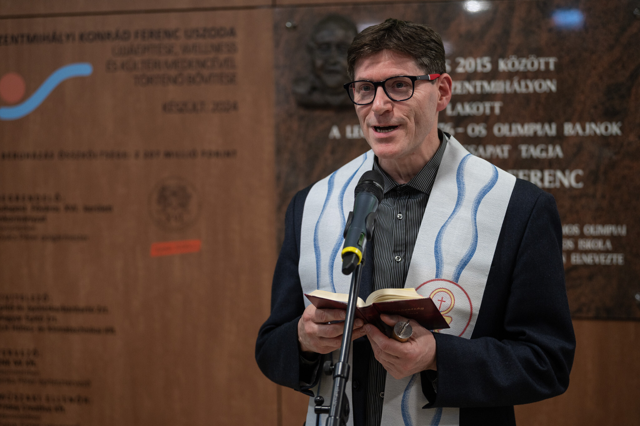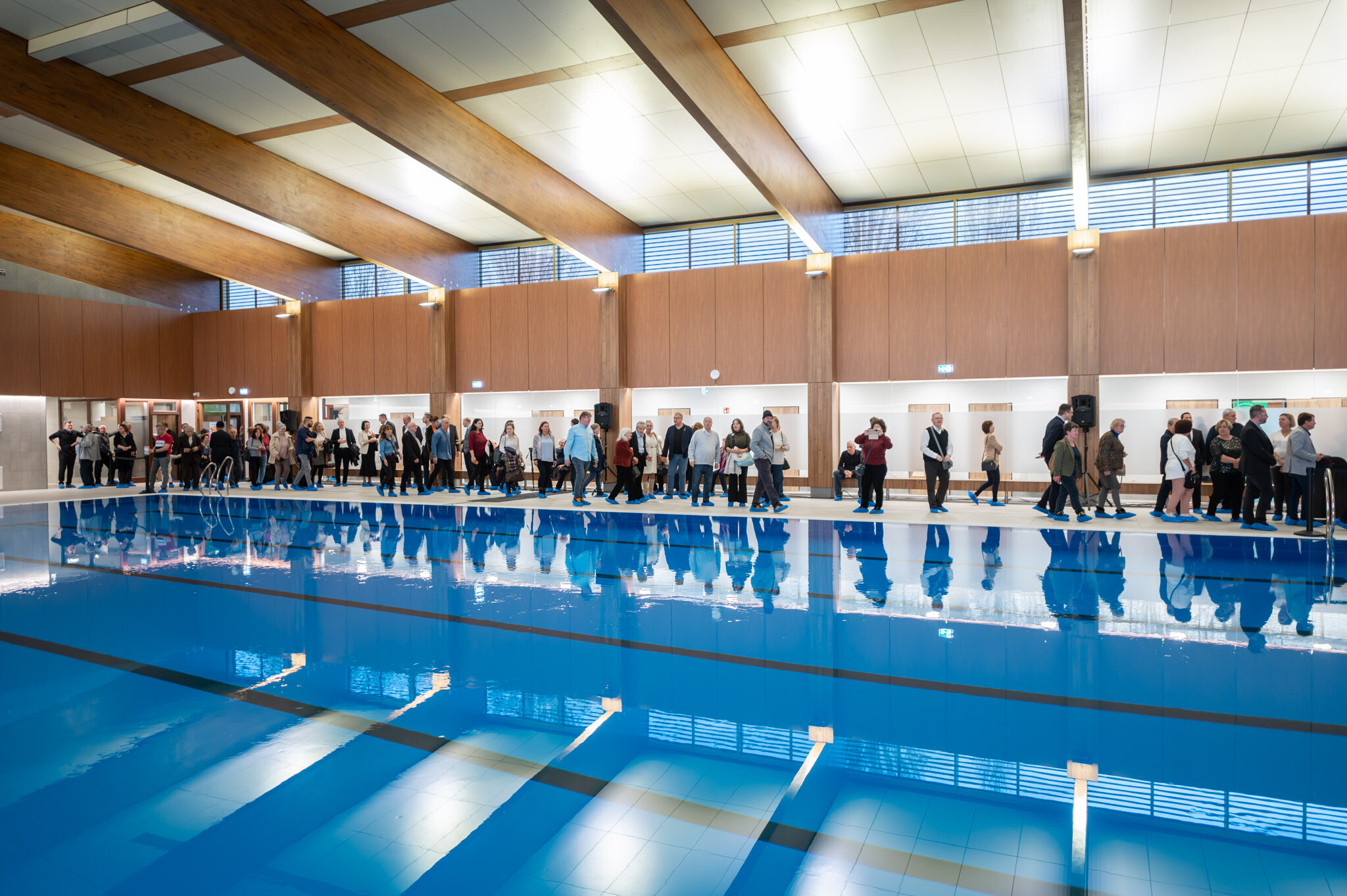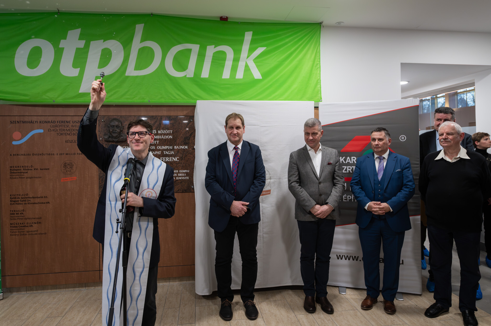 Az eseményen az építőipari céget Vadlicsek Viktor projektigazgató képviselte, a tervező SNK Mérnökirodát pedig Sinka Péter; illetve az eredeti uszodát tervező Ybl díjas Benczúr László is eljött az ünnepségre. Szintén részt vett és felszólalt Czuczor Attila, a Kertvárosi Sportlétesítményeket Üzemeltető Kft. ügyvezetője is. Az eseményen a névadó, és az uszodát gyakran látogató olimpikont a sportember özvegye, Konrád Ilona képviselte. Az újjáépült létesítményt az ünnepség végén egyházi áldásban is részesítették.