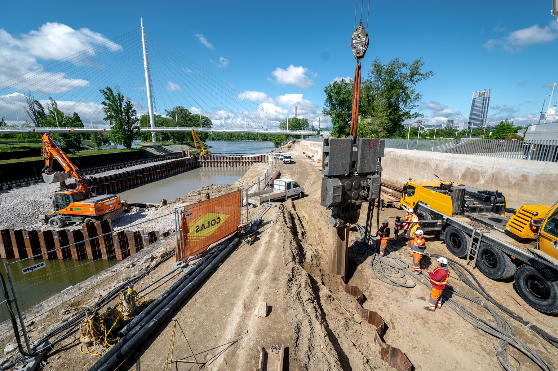 A szádlemezek leverése előtt négy helyen szondázták a medret, mely ezen a szakaszon hét méter mély, hogy meghatározzák hol található az agyag, amelyet el kell érnie a vízzárást biztosító szádlemezeknek. Tíz méteres lemezeket vertek le a mederbe.
