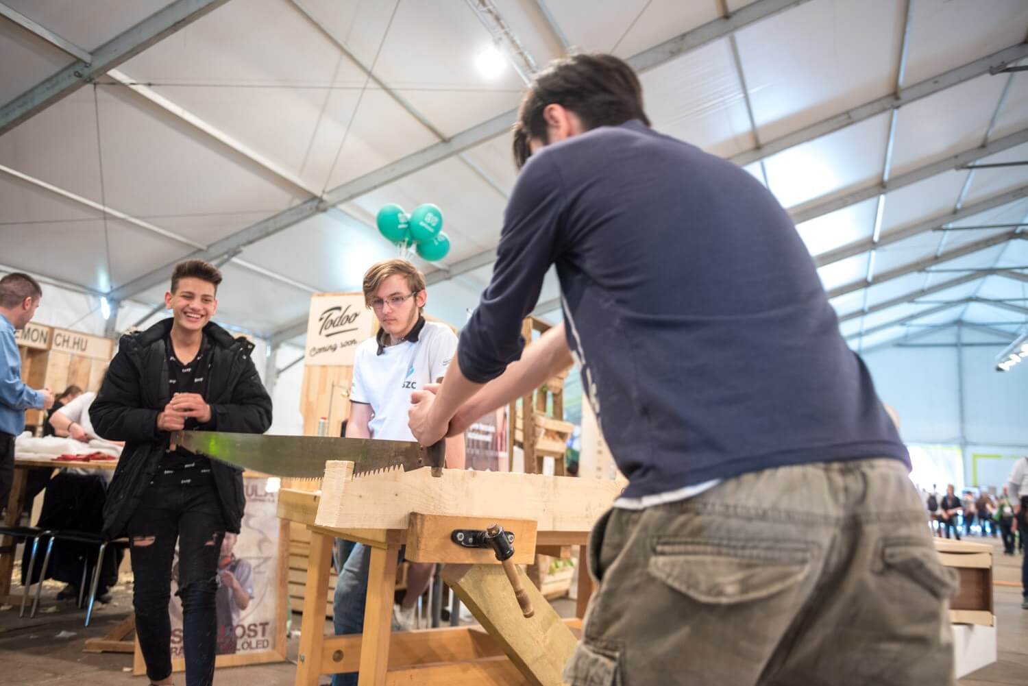 A mai napon interaktív workshopokon mutatják be a fővárosi szakképzési centrumhoz tartozó intézmények szakképzéseit és a szakemberek mindennapjait. A rendezvénysátorban nagy az érdeklődés, rengeteg fiatal próbálja ki a faszerkezetépítéstől kezdve a gasztronómiáig a karrierek kezdők által is biztonságosan használható eszközeit.