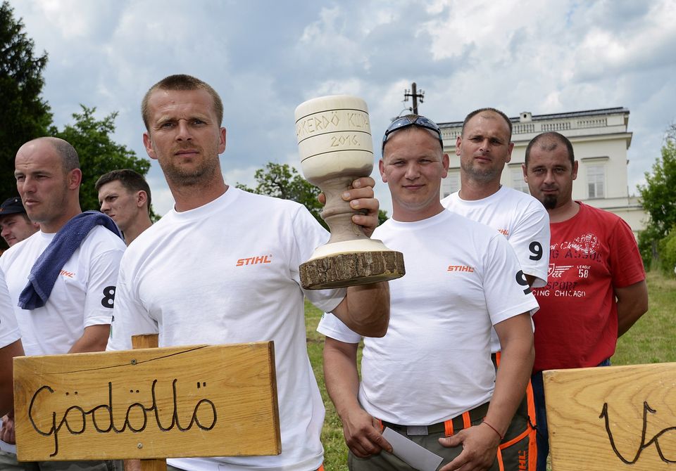 A jó hangulatú verseny végül a Gödöllői Erdészet győzelmét hozta. A fakitermelő csapat tagjai: