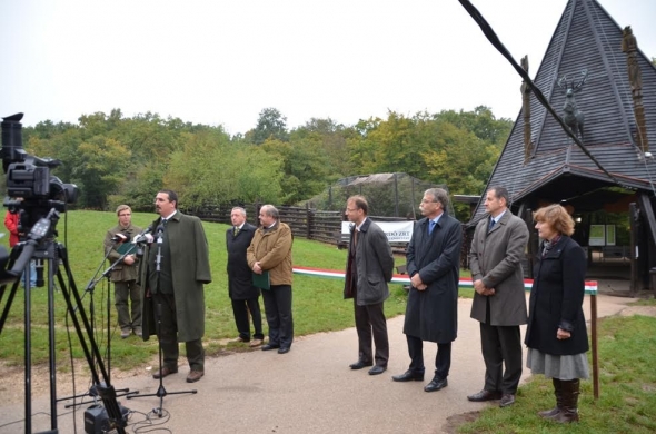 A mindenki számára elérhetővé, igazán multifunkcionálissá vált fogadóépület 2015. október 14-i ünnepélyes átadóján Ugron Ákos Gábor állami földekért felelős helyettes államtitkár, dr. Tarnai Richárd Pest megyei kormánymegbízott, Csenger Zalán Zsolt országgyűlési képviselő, és Zambó Péter, a Pilisi Parkerdő Zrt. vezérigazgatója mondott köszöntőt. A beszédek és az ünnepélyes szalagátvágás után a résztvevők Szabó Péter, a Budakeszi Vadaspark igazgatója szakvezetésével tettek egy sétát a parkban.