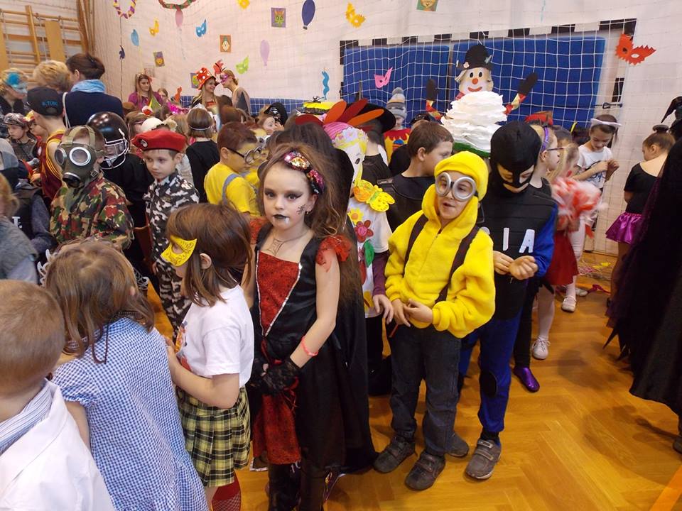 Az alsó tagozatos gyerekek még egyéni jelmezekben virítottak. Sláger volt a hercegnő, a kosárlabdázó és a mignon. Sok-sok egyéni, kézzel készített alkotás jelent meg, amit a szülők gyermekeikkel együtt, már e délután előtti napokban lázasan készülődve alkottak meg.