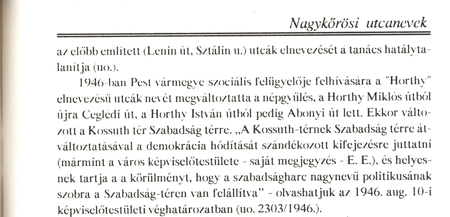 A komikum ebben az, hogy ezt a teret, amit egy a Vaterán 999 forintért árusított képen is látható, az 1910-20 években valóban Kossuth térnek hívták Nagykőrösön, viszont ahogyan az Erdélyi Erzsébet „Nagykőrös utcaneveinek története 1850-1982 között”- című könyvben olvasható a tér 1946-óta a Szabadság tér névre hallgat.