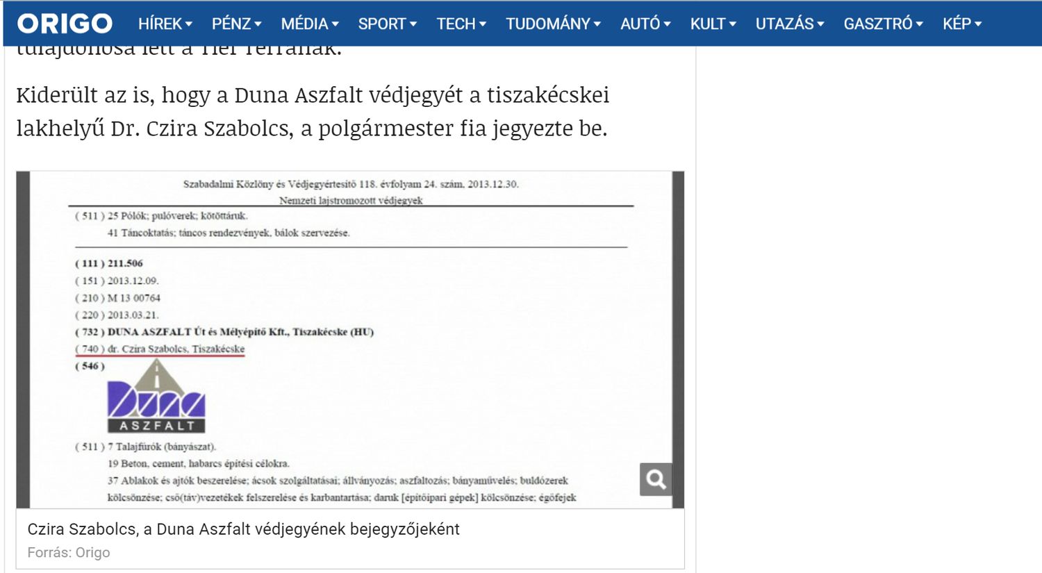 Nagyon komoly sajtószakmai kérdést vet fel az a tény, hogy az origo.hu által 2016. április 29-én pénteken leközölt Nagykőrössel kapcsolatos írásban az a rész, hogy ki védte le a Duna Aszfalt Kft. védjegyét, 2016. május 3-án reggelre módosításra került. Az eredeti tartalomban leközölt hamis állítás rendkívül jelentős mértékű hiba a szerkesztőség részéről, amely szervezet vélhetően egyfajta kárenyhítési céllal próbálta a gyakorlattól eltérő módon mérsékelni a hamis állításából vélhetően következő jogi felelősségét. Sajnos az on-line hírfogyasztási kultúránk alapján, mint az látható is az eredeti cikknél, az összesen 17 hozzászólás a megjelenést követő 6 órában született. A cikket ezt követően már nem olvasták újra az olvasók, így lényegét tekintve az origo.hu azzal, hogy módosította az eredeti cikkét érdemben nem adott lehetőséget az olvasóinak, hogy felhívja a figyelmet a hamis állítására.