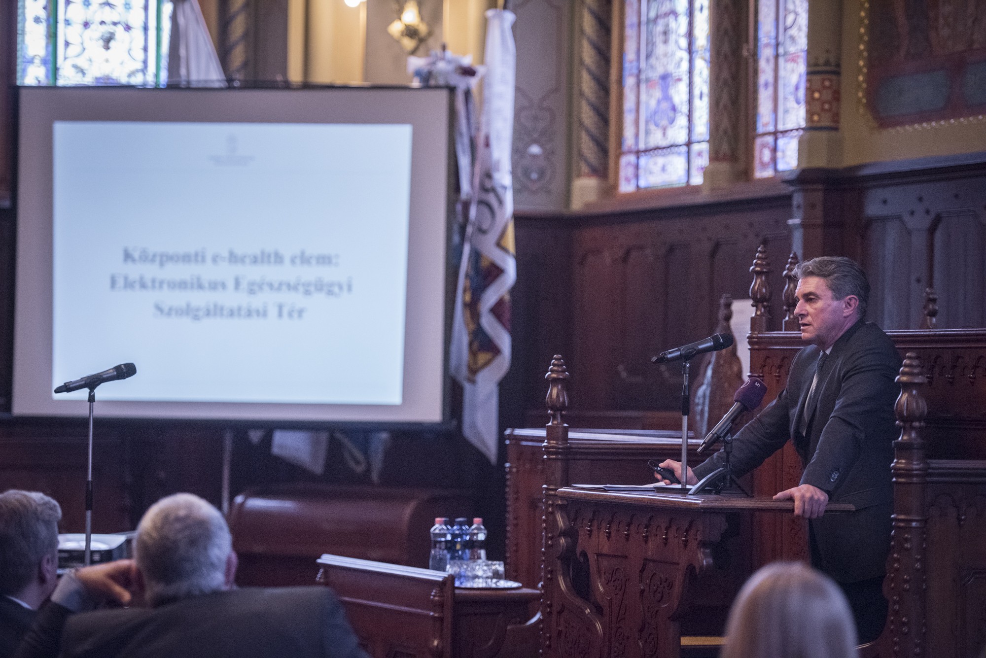 Az első előadó dr. Mészáros János, az egészségügyért is felelős Emberi Erőforrások Minisztériumának (Emmi) helyettes államtitkára volt. Az orvos-politikus az informatika szerepéről beszélt az egészségpolitikai folyamatok átalakításában, kiemelve a novemberben elindított Elektronikus Egészségügyi Szolgáltatási Tér (EESZT) jelentőségét.