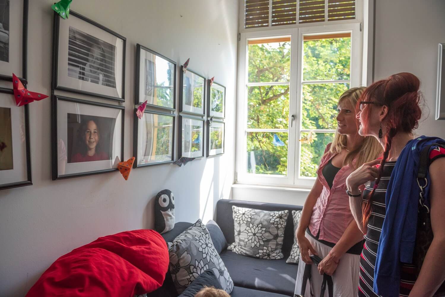 A hat apartman mellett közösségi terek is készültek a felújított épületben: nappali, konyha, mosókonyha, pszichológus szoba, pedagógus szoba, gyógytorna szoba és játszószoba segítik megteremteni a biztonságos, kellemes légkört a családoknak.