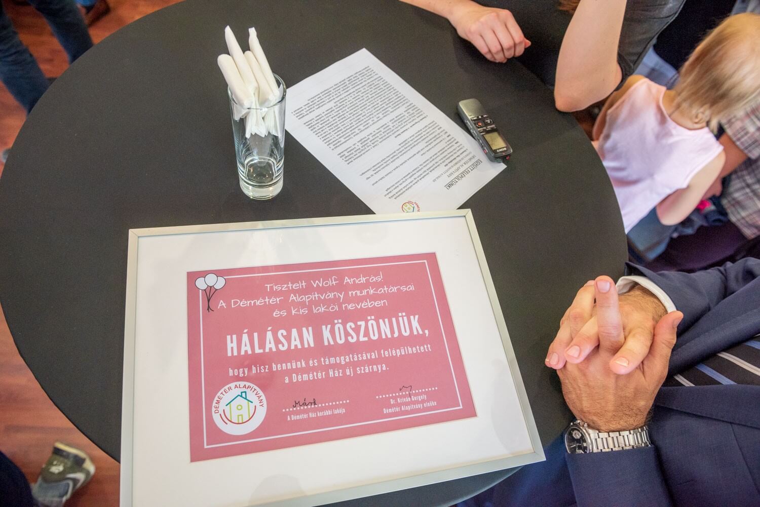 Szabó Bálint, a Démétér Ház jószolgálati nagykövete – aki maga is érintett a csontvelő-transzplantáció ügyében egy rokonán keresztül – méltatta Kriván Gergely osztályvezető és Sedlák Gabriella, a Démétér Program igazgatója áldozatos munkáját, akik mellett elmondása szerint az első perctől kezdve biztonságban érezhetik magukat az ide érkező gyerekek és szüleik.