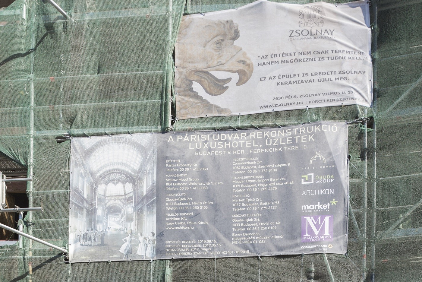 Hermesz János, a Párizs Property Kft. projekt menedzsere, a felújítást végző csapat vezetője elmondta, hogy az épület engedélyezési és kiviteli terveit az Örökségvédelmi Hivatal szigorú felügyelete mellett készítették el. A felújítási munkák is a hatóság felügyelete és konstruktív segítsége mellett, szakrestaurátorok által készített tervek alapján történnek. Az épület érzékeny részleteit adó műemléki elemeket többségében budapesti és vidéki restaurátori műhelyekben újítják fel.