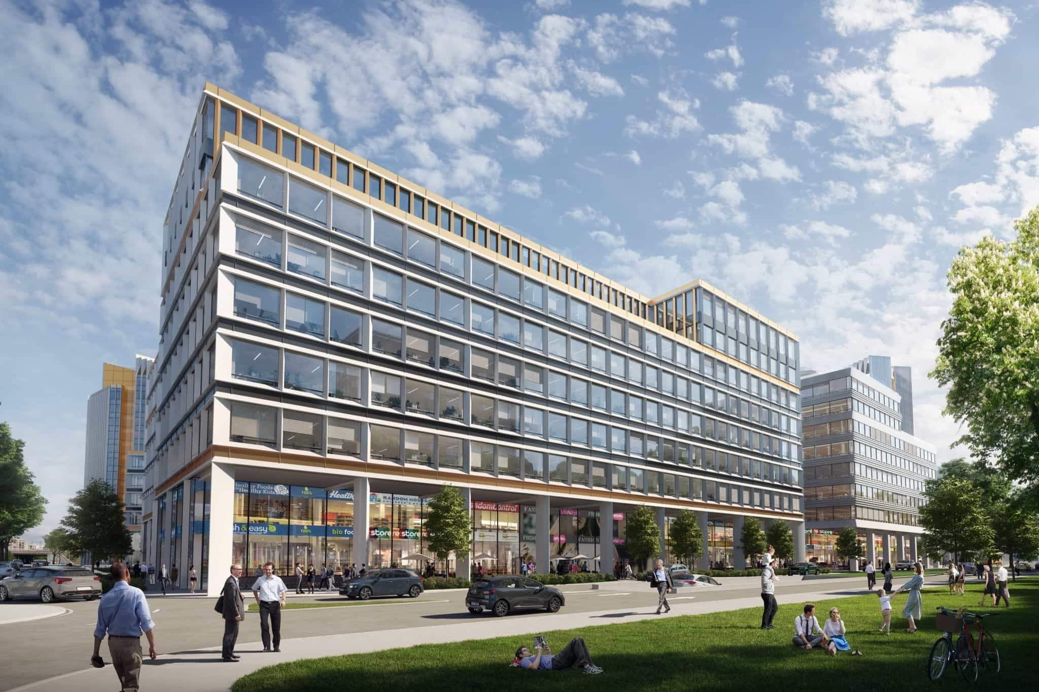 Az ingatlanfejlesztő 136 ezer négyzetméteres irodaberuházásánál hozta létre a zöldfelületet, s a leendő ügyfelek egy speciális rendezvény- és bemutatótermet is kaptak.