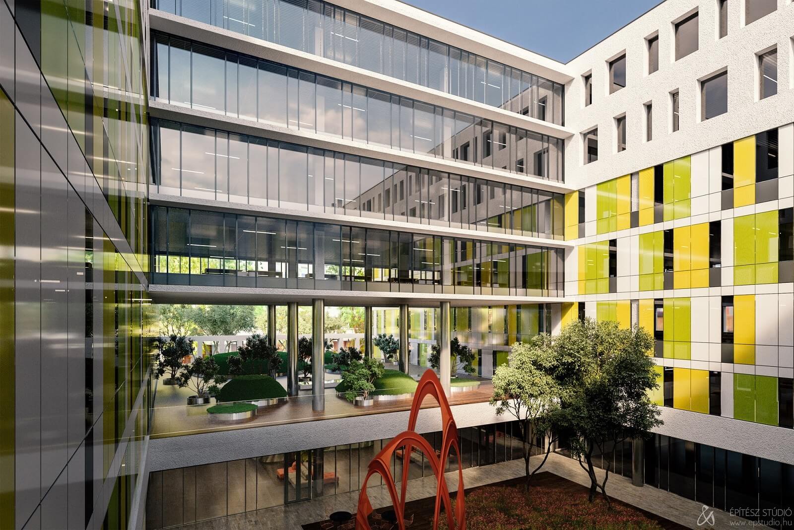Az „A” kategóriás irodaház-együttes a meglévő parkolóházzal összeépülve jön létre, s 24 ezer négyzetméternyi irodaterületet kínál majd. Az első ütemben ebből 8 ezer négyzetméternyi iroda készül el (összesen pedig egy 12 ezer négyzetméter alapterületű épületrész valósul meg ebben a lépésben).