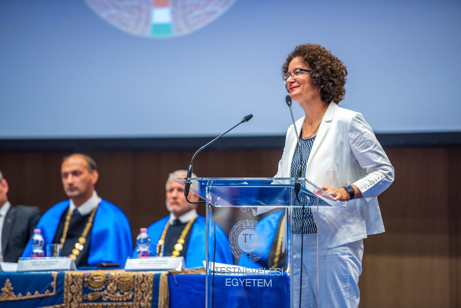 Kedden délelőtt, ünnepélyes keretek között adták át a Testnevelési Egyetem új főépületét. Az eredetileg a sportkórház központi épületének tervezett létesítmény 2004 óta állt félbehagyva, most a ZÁÉV Építőipari Zrt. egy év alatt fejezte be, már az egyetem igényeihez mérten. Az épület az összesen 11,9 milliárd forintos első ütemterv részeként jött létre.