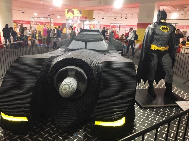 Egy hatméteres batmobilt is megnézhetünk Európa legnagyobb Lego-kiállításán.