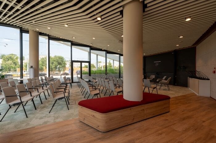 Amint az ATENOR közleményében kiemelték: az épület ideális hibrid működést – vegyesen irodai és otthonról végzett munkavégzést – tesz lehetővé. Az asztalok közös használatával pedig jelentősen csökken az irodai lét környezetterhelése.