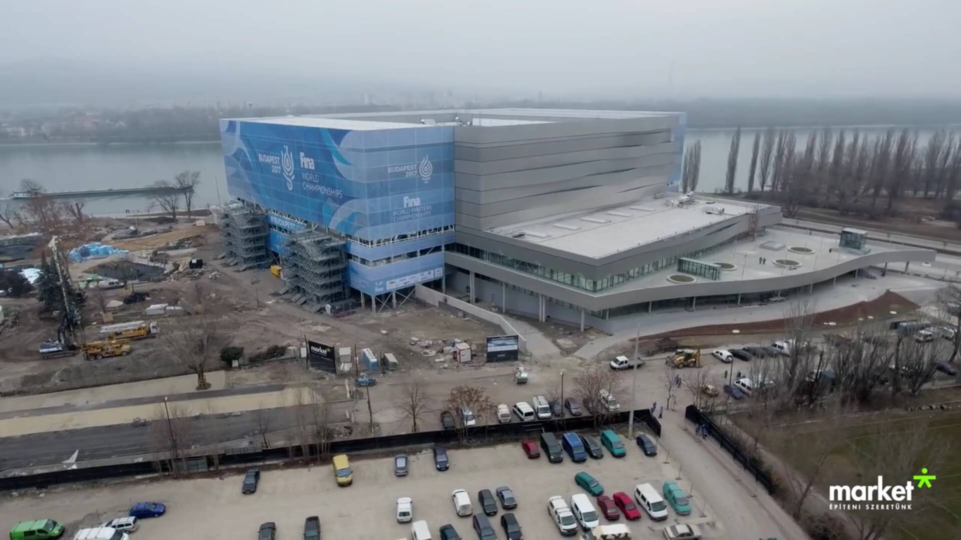 Az MTI egy fotóval számolt be az idei budapesti vizes világbajnokságra rekordidő alatt megépült Dagály Úszóaréna előtt zajló tereprendezésről. A fényképet a magyarepitok.hu megtoldotta a kivitelező Market Építő Zrt. által nemrég közzétett drónfelvétel képeivel.