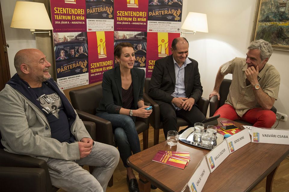 A Szentendrei Teátrum és Nyár idei programjairól tartott sajtótájékoztatót a Szentendrei Kulturális Központ. 18 színházi előadással, köztük két magyarországi ősbemutatóval, öt gyerekteátrumi darabbal, négy koncerttel, négy fesztiválprogrammal és új játszóhellyel várja a közönséget idén nyáron Szentendre. A széles programkínálat mellett új arculattal jelenik meg a kulturális rendezvénysorozat. Vasvári Csaba frissen kinevezett előadóművészeti igazgató vendégei a nyár két premierdarabjának létrehozói, Orlai Tibor, Balla Eszter és Sipos Imre voltak.